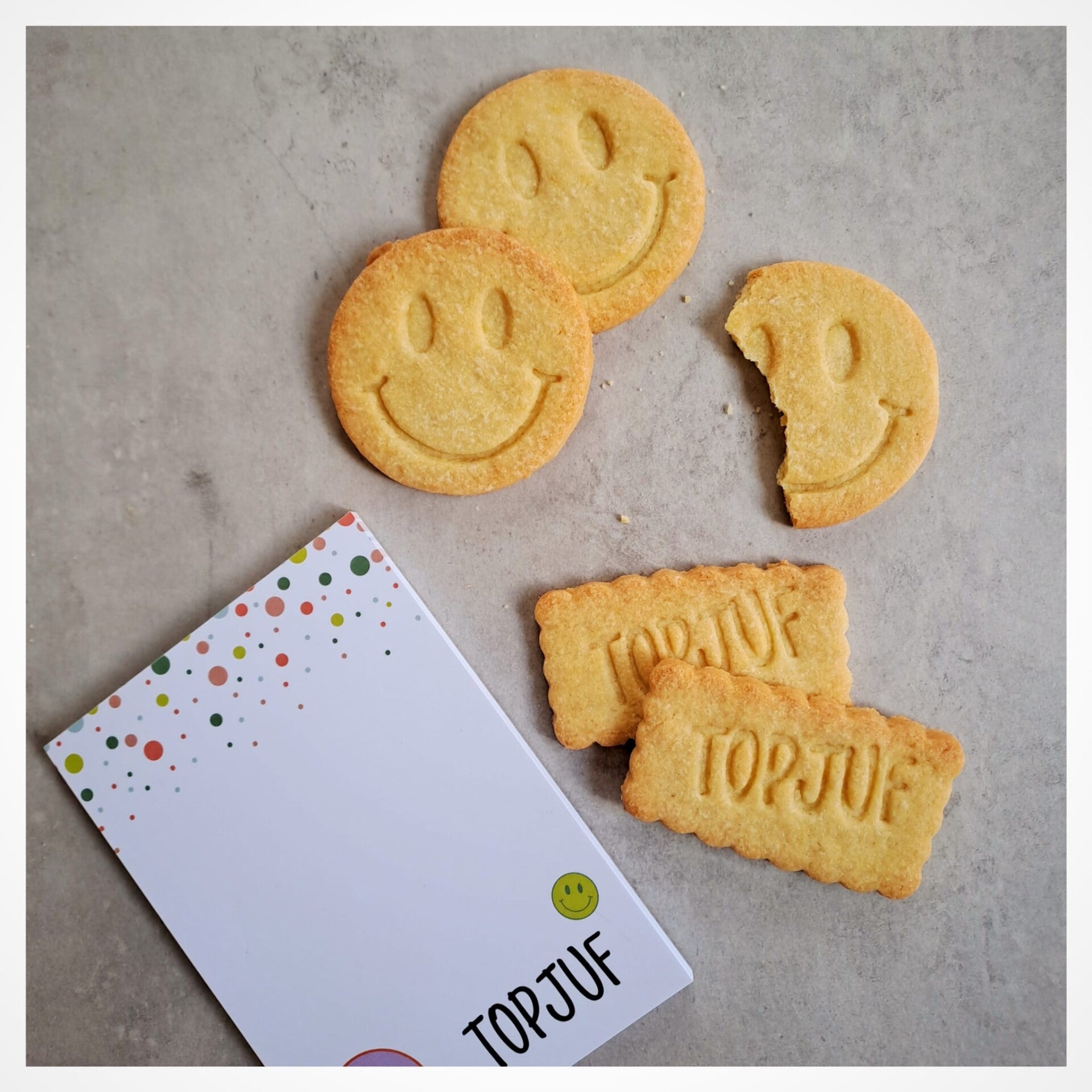 - Zandkoekjes (opdruk topjuf/topmeester én smiley's)