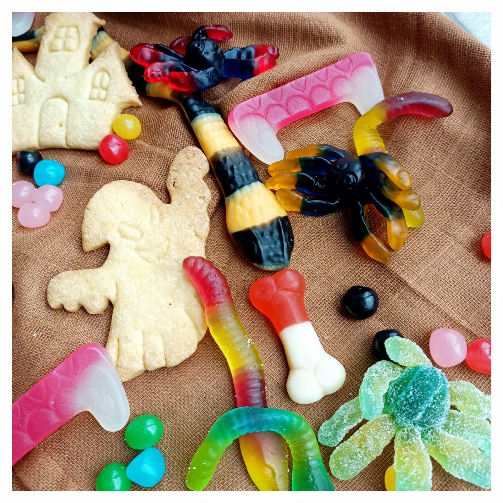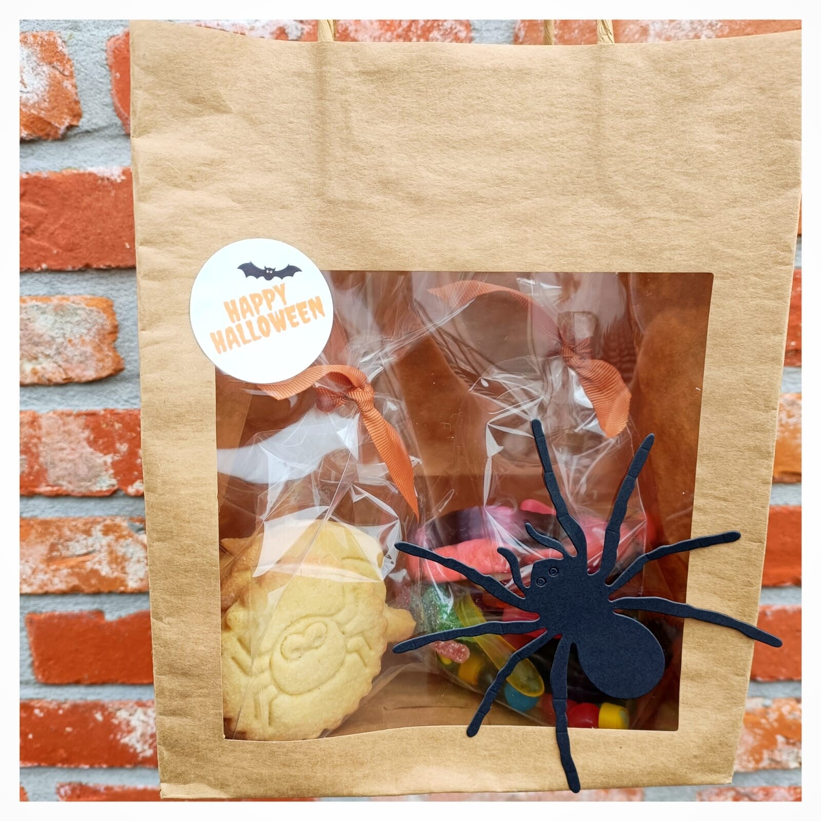 Leuk tasje gevuld met halloweenkoekjes en griezelsnoepjes