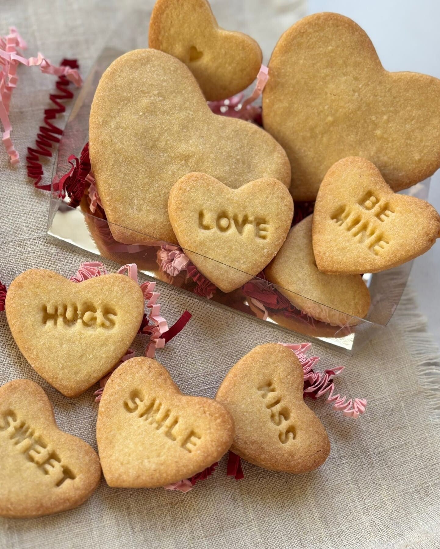 Doosje met een klein assortiment zandkoekjes in Valentijn thema
