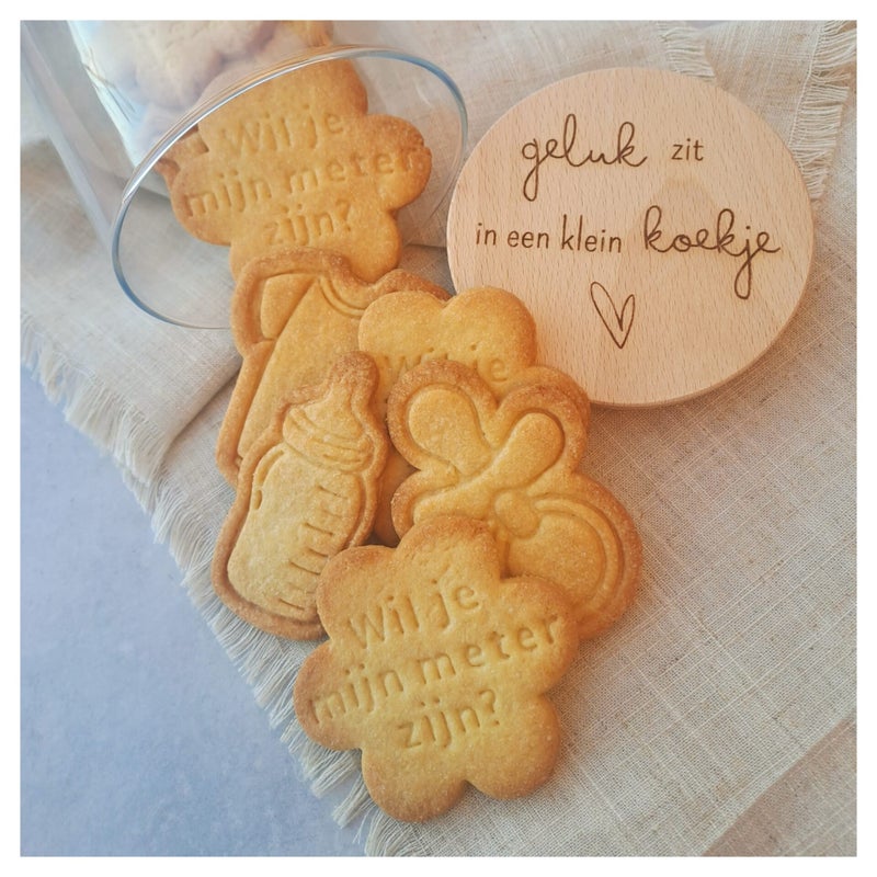 Je kan ervoor kiezen om de koekjes te presenteren in deze glazen pot. Een blijvend aandenken aan dit leuke nieuws.
